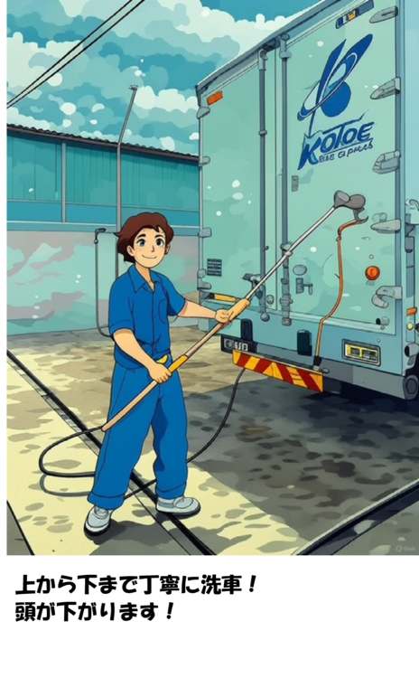 完成すれば、厳しい暑さ、寒さの中、高い所からシャーシ下回りまで丁寧に洗車してくれていた